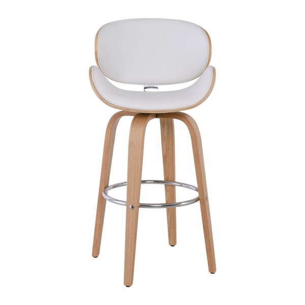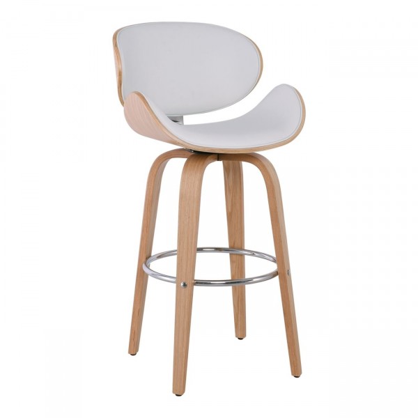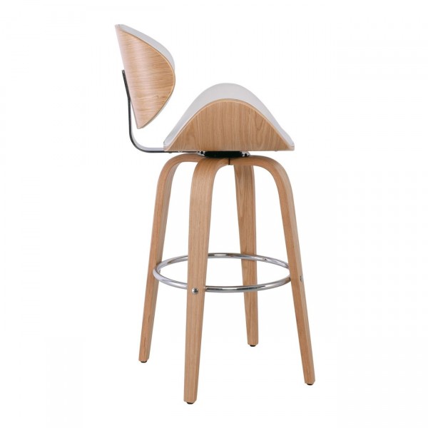 Σκαμπό BAR με Πλάτη, Απόχρωση Φυσικό, PU Άσπρο, Περιστρεφόμενο