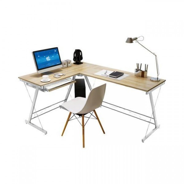 Γραφείο Η/Υ Γωνία, Μέταλλο Βαφή Άσπρο, Επιφάνεια Απόχρωση Maple