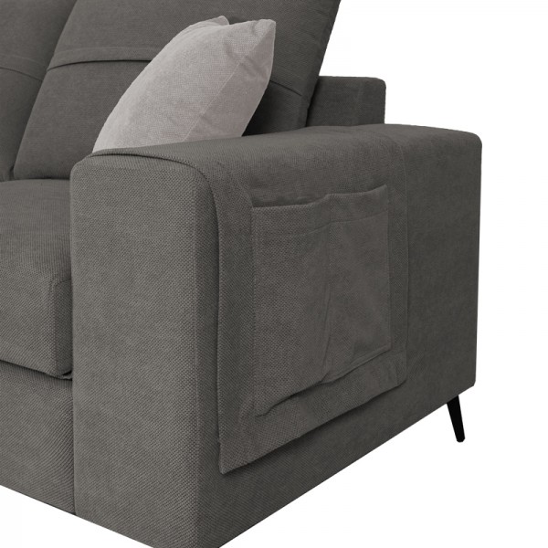 Χρώμα καναπέ και μαξιλαριών πλάτης: Ποντικί - Φέρει δύο διακοσμητικά μαξιλαράκια σε ανοιχτό γκρι χρώμα.