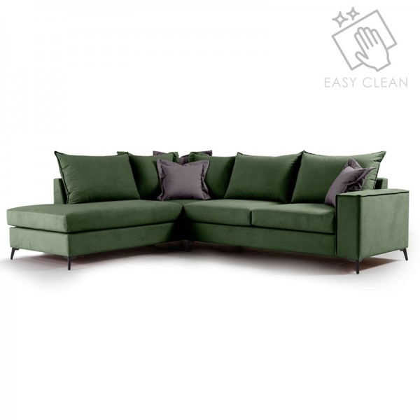 Γωνιακός καναπές δεξιά γωνία Romantic pakoworld ύφασμα κυπαρισσί-ανθρακί 290x235x95εκ
