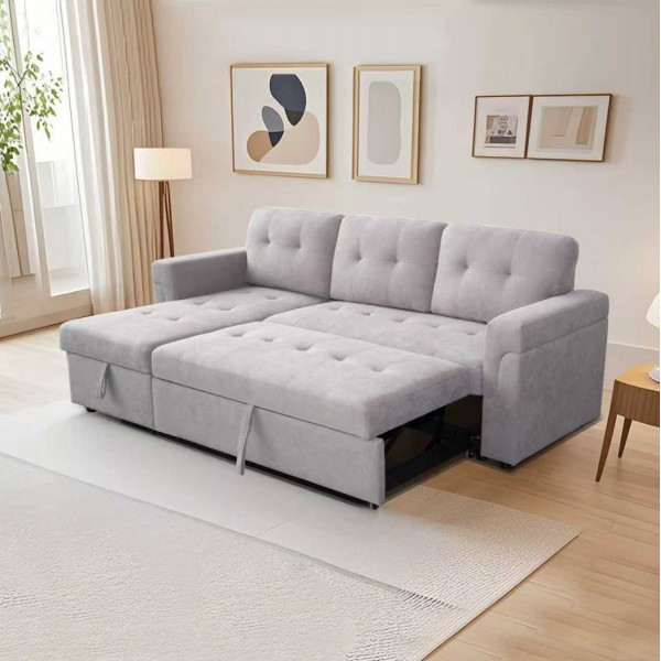 Ο SAL είναι ένας όμορφος και πρακτικός γωνιακός καναπές. Το χρώμα της επένδυσης ολόκληρου του καναπέ είναι ΑΝΟΙΧΤΟ ΓΚΡΙ. Εκτός από γωνιακός καναπές, γίνεται και κρεβάτι τραβώντας με δύο ιμάντες το έξτρα «ράντζο» που βρίσκεται κάτω από το κυρίως κάθισμα. Επίσης, ο καναπές μπορεί να στηθεί είτε με δεξιά γωνία, είτε με αριστερή (αναστρέψιμος) ενώ διαθέτει και αποθηκευτικό χώρο κάτω από το τμήμα της γωνίας. Τέλος, τα πόδια του καναπέ είναι χαμηλά δίνοντας στιβαρότητα σε όλη την κατασκευή.
