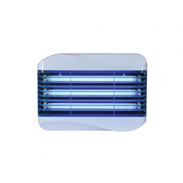 Mε ειδική κολλητική επιφάνεια επιτοίχια (HACCP). Ασφαλής, άοσμη και αθόρυβη. Πλαστική κατασκευή ABS. Με λάμπα UV ισχύος 36 watt.Μέση διάρκεια ζωής της λάμπας 8.000 ώρες περίπου. Ακτίνα κάλυψης 100 m².
