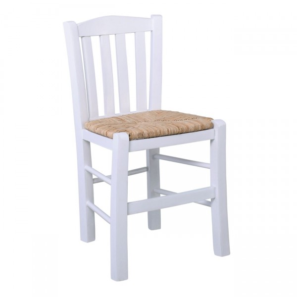Καρέκλα Οξιά Βαφή Εμποτισμού Λάκα Άσπρο, Κάθισμα Ψάθα