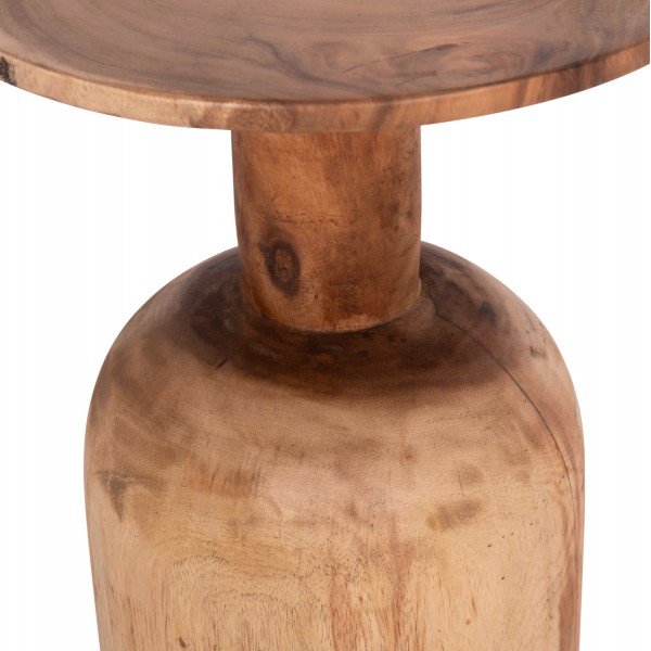 Ανακαλύψτε το μοναδικό στρογγυλό βοηθητικό τραπέζι PUMBE. Η βάση του έχει σχήμα καμπάνας ενώ η επιφάνεια είναι επίπεδη και στρογγυλή. Το τραπεζάκι είναι από μασίφ ξύλο SUAR σε ΦΥΣΙΚΟ χρώμα. Το rustic design δίνει μια διαχρονική και ζεστή αίσθηση στον χώρο σας. Αποτελεί την ιδανική επιλογή για το σπίτι αλλά και για ξενοδοχεία ή χώρους εστίασης κτλ.
