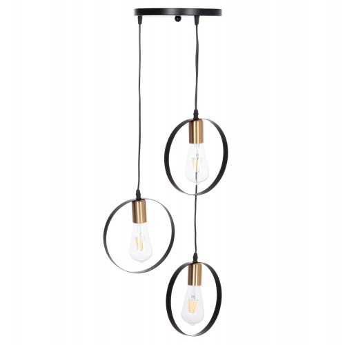 Το κρεμαστό φωτιστικό οροφής KRENT είναι τρίφωτο με την κάθε λάμπα να βρίσκεται σε διαφορετικό ύψος. Οι λάμπες τοποθετούνται σε χρυσά ντουί ενώ το φωτιστικό εντυπωσιάζει με τα καπέλα με το minimal design τους.