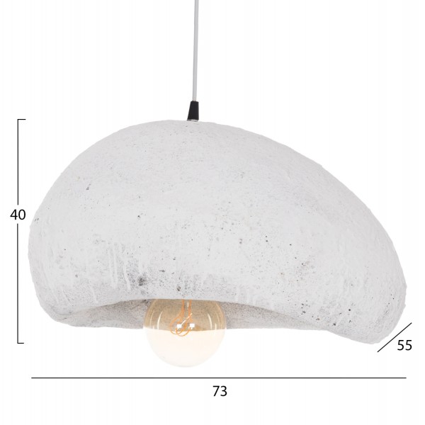 Αυτό το κρεμαστό φωτιστικό οροφής σε σχήμα πέτρας είναι κατασκευασμένο από RESIN(ΡΗΤΙΝΗ) υλικό σε ΛΕΥΚΟ χρώμα και διαχέει τον φωτισμό απαλά στο χώρο, δημιουργώντας μια όμορφη ατμόσφαιρα. Αποτελεί κυρίως διακοσμητικό στοιχείο στον χώρο και απαιτεί ανάλογο περιβάλλον.