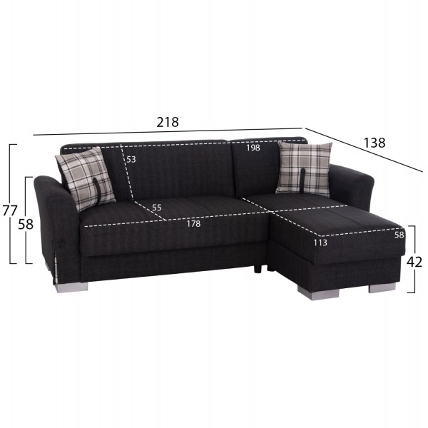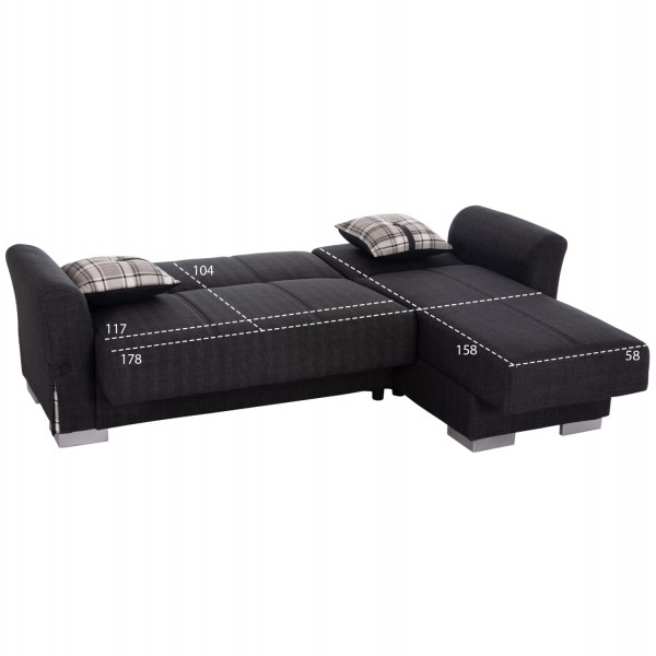 Ο BRONKO είναι ένας τριθέσιος γωνιακός και αναστρέψιμος καναπές-κρεβάτι που μπορεί να προσαρμοστεί ανάλογα με τις απαιτήσεις του δικού σας χώρου αποτελώντας μία έξυπνη και πρακτική πρόταση για εξοικονόμηση χώρου στο γραφείο ή το σπίτι. Η επένδυσή του είναι με εξαιρετικής ποιότητας ΑΝΘΡΑΚΙ ύφασμα, ενώ τα μπράτσα είναι φαρδιά τόσο-όσο για να προσφέρουν άνεση και στήριξη. Επίσης, έρχεται με δύο μαξιλαράκια σε όμορφο ανοιχτό γκρι χρωματισμό.