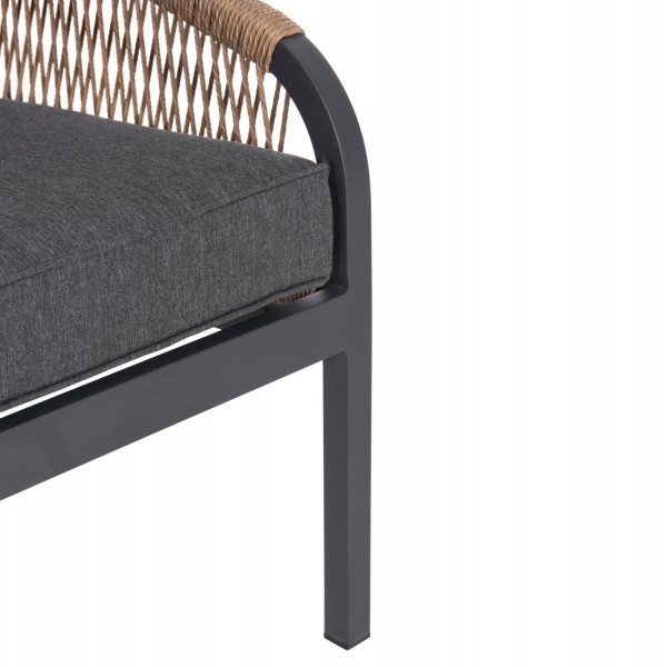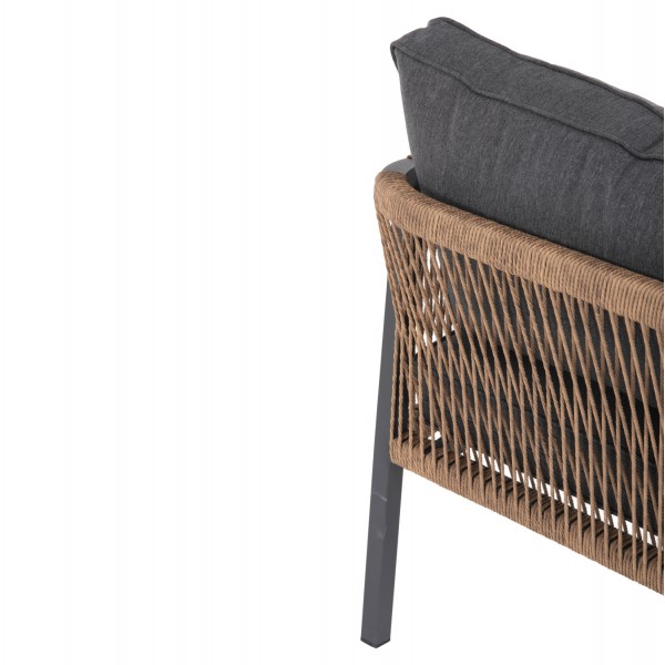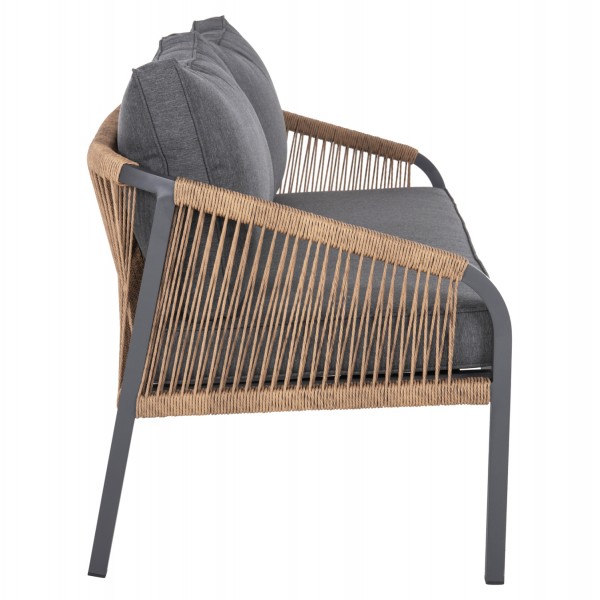 Σας παρουσιάζουμε τον MAERLY, έναν πανέμορφο 3θέσιο καναπέ εξωτερικού χώρου σε συνδυασμό ΑΝΘΡΑΚΙ-ΜΠΕΖ. Ο συνδυασμός του σκελετού αλουμινίου σε ΑΝΘΡΑΚΙ χρώμα με το ΣΚΟΥΡΟ ΜΠΕΖ συνθετικό σχοινί που διατρέχει πλεγμένο όλο τον καναπέ, καθώς και τα 2μεγάλα μαξιλάρια πλάτης με πολυεστερικό ύφασμα σε ΑΝΘΡΑΚΙ χρώμα είναι μοναδικός, και μπορεί να αλλάξει άμεσα την εικόνα οποιουδήποτε εξωτερικού χώρου. Χαρακτηριστικό γνώρισμα αυτού του καναπέ είναι ότι τα πόδια είναι ψηλά, με αποτέλεσμα και το ύψος του καθίσματος να είναι ψηλό.