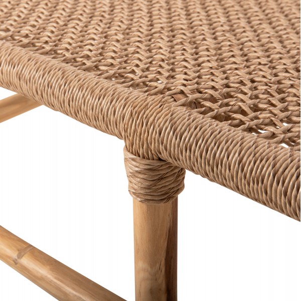 Ο καναπές 2 θέσεων LONDER είναι κοντό και φαρδύ χωρίς μπράτσα απαράμιλλης ομορφιάς. Ο πανέμορφος σκελετός του είναι από ποιοτικό ξύλο, ενώ τόσο η μεσαίου ύψους πλάτη όσο και το φαρδύ κάθισμα αποτελούνται από αριστοτεχνικά πλεγμένο συνθετικό Rattan («τυλιχτό» που μοιάζει με σχοινί). Οι σχεδιαστικές γραμμές είναι κομψές και με γνώμονα την άνεση του χρήστη, με χαρακτηριστικό παράδειγμα το κοντό κάθισμα με την έντονη κλίση και την πλάτη με την επίσης χαρακτηριστική κλίση προς τα πίσω. Το ξύλο έχει το φυσικό του χρώμα που μπορεί άνετα να συνδυαστεί με διάφορα διακοσμητικά μοτίβα. Ο καναπές θα αποτελέσει το κέντρο ενδιαφέροντος οπουδήποτε και αν τοποθετηθεί.