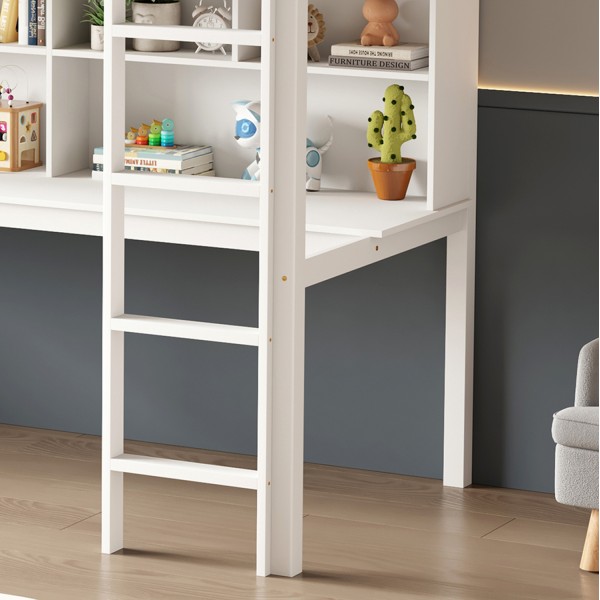 Η παιδική κουκέτα LIBRO σε διάσταση για στρώμα 90x190εκ, είναι κατασκευασμένη από ξύλο πεύκου σε ΛΕΥΚΟ χρώμα. Η πρόσβαση στο κρεβάτι γίνεται με πρακτική κάθετη σκάλα, ενώ το κάτω μέρος είναι διαμορφωμένο ως βιβλιοθήκη με χώρο για γραφείο. Το στρώμα τοποθετείται σε τάβλες από κόντρα-πλακέ ξυλεία.
