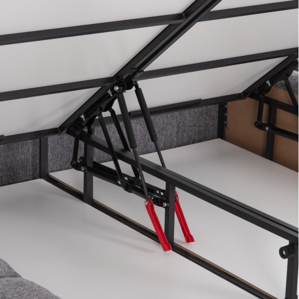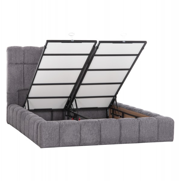 Το RΑΜΟΝ είναι ένα υπέρδιπλο κρεβάτι που θα αγαπήσετε με την πρώτη ματιά! Το κεφαλάρι είναι ψηλό με τεχνοτροπία καπιτονέ από «ζεστό» και εντυπωσιακό ύφασμα μπουκλέ σε ΓΚΡΙ χρώμα. Τα πλαϊνά του κρεβατιού αλλά και το ποδαρικό είναι ίδιας αισθητικής με το κεφαλάρι και «αγκαλιάζουν» το στρώμα! Το στρώμα τοποθετείται σε δύο υποστρώματα/μοριοσανίδες, οι οποίες μάλιστα ανασηκώνονται με μεταλλικό μηχανισμό ασφαλείας με 4 αμορτισέρ και διαφανείς πλαστικές λαβές προσφέροντας έναν μεγάλο αποθηκευτικό χώρο.