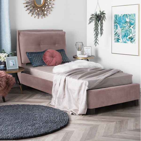 Το μονό κρεβάτι RILEY είναι επενδυμένο με βελούδο σε ΣΑΠΙΟ ΜΗΛΟ χρώμα. Το στρώμα (διατίθεται σε ROLL-PACKING*) που συνοδεύει το κρεβάτι τοποθετείται σε δύο σειρές ανατομικές τάβλες, είναι διπλής όψης και είναι ΑΦΡΟΥ χωρίς ελατήρια. Τα πόδια είναι σχετικά ψηλά από πολυπροπυλένιο σε μαύρο χρώμα. *Roll-packing σημαίνει ότι το ξεδιπλώνεις πάνω στο κρεβάτι σου και το αφήνεις περίπου 48 ώρες μέχρι να φτάσει στην σωστή του μορφή απορροφώντας αέρα και να είναι έτοιμο για χρήση. ΔΙΑΣΤΑΣΕΙΣ: 99x222x106Υ εκ. Ύψος πλαϊνών και ποδαρικού: 34 εκ. Ύψος ποδιού: 10 εκ. Διαστάσεις στρώματος: 90x200 εκ.----- Ύψος στρώματος: 15 εκ. ΣΥΝΤΗΡΗΣΗ: Για να διατηρήσετε καθαρό και αφράτο το βελούδο, καλό είναι να το καθαρίζετε μία φορά την εβδομάδα με την ηλεκτρική σκούπα. Τοποθετήστε ένα απαλό βουρτσάκι, βάλτε το ήπιο πρόγραμμα στη σκούπα σας και σκουπίστε όλη την επιφάνεια με τη φορά της ίνας. Θα δείτε ότι αμέσως η σκόνη θα απομακρυνθεί και το πέλος του υφάσματος θα γίνει σαν καινούργιο. Σε καμία περίπτωση δεν πρέπει να τρίψετε ένα βελούδινο ύφασμα. Ακόμα και αν πρέπει να αφαιρέσετε έναν λεκέ μην τον τρίψετε. Βρέξτε ένα απαλό πανάκι με νερό και ταμπονάρετε τοπικά στον λεκέ. *Tο προϊόν παραδίδεται αμοντάριστο σε εργοστασιακή συσκευασία, με οδηγίες συναρμολόγησης ** Η χρωματική απόδοση του προϊόντος ενδέχεται να διαφέρει ελαφρώς σε σχέση με την φωτογραφική απεικόνισή του στην οθόνη σας.