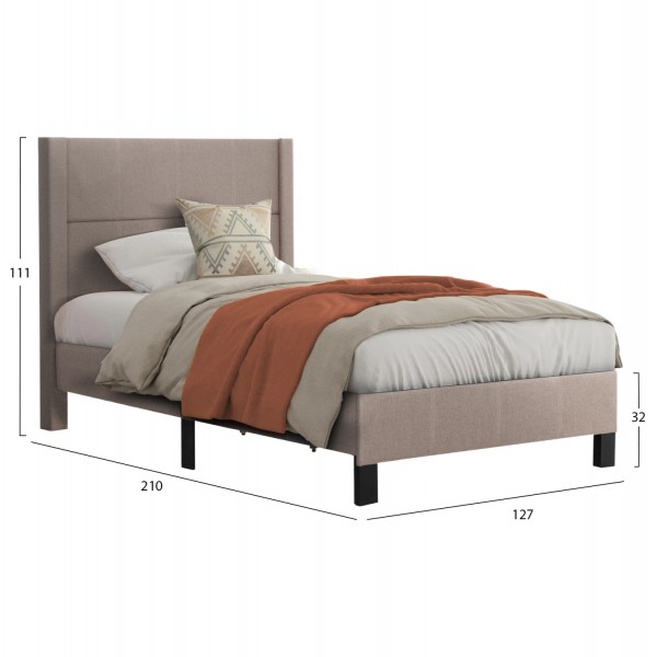 Το μονό κρεβάτι TRILLOP διαθέτει ψηλό κεφαλάρι, επενδυμένο με ανάγλυφο ύφασμα σε ΜΠΕΖ χρώμα με καπιτονέ τεχνοτροπία σε μεγάλα τετράγωνα, όπως και όλο το κρεβάτι. Η στήριξη του στρώματος γίνεται με κλασικές τάβλες οι οποίες εμπεριέχονται στην συσκευασία και στην τιμή. Ιδανικό κρεβάτι τόσο για το σπίτι, όσο και για επαγγελματικούς χώρους, όπως ξενοδοχεία και Airbnb. Άλλωστε, ακόμα κι η συναρμολόγησή του είναι πανεύκολη, αφού όλα τα απαραίτητα περιέχονται στην συσκευασία. Απλά και όμορφα φτιάχνετε το υπνοδωμάτιο των ονείρων σας!