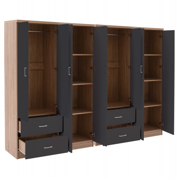 Ντουλάπα μελαμίνης 8-φυλλη σε χρώμα SONAMA-ΣΚΟΥΡΟ ΓΚΡΙ, που αποτελείται από 2 πανομοιότυπες 4-φυλλες ντουλάπες.