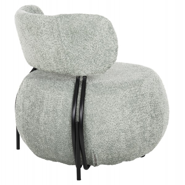 Η επένδυση της πολυθρόνας έχει γίνει εξολοκλήρου με εξαιρετικής ποιότητας ύφασμα ΜΠΟΥΚΛΕ. Μπουκλέ λέγεται οποιοδήποτε ύφασμα που έχει κόμπο-μπούκλα στην ύφανσή του . Κατασκευάζεται από σχεδόν όλες τις πρώτες ύλες (αν και συνήθως είναι συνθετικό) με ειδικές κλωστές με κόμπους ή πολύ στριμμένα νήματα, έτσι ώστε να έχει σγουρή επιφάνεια. Δεν τσαλακώνει και μπορεί να είναι μονόχρωμο, μελανζέ ,καρώ ή τουιντ.