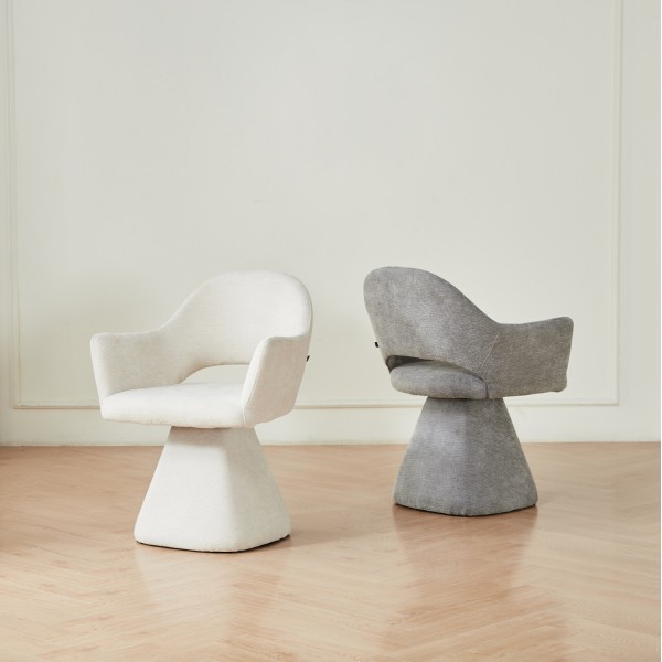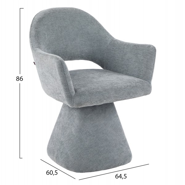 Σας παρουσιάζουμε την SIMA. Μια premium περιστρεφόμενη πολυθρόνα τραπεζαρίας που συνδυάζει κομψότητα και λειτουργικότητα σε απόλυτη ισορροπία. Επενδυμένη εξολοκλήρου με λινό ύφασμα σε ΓΚΡΙ απόχρωση, αποπνέει φωτεινότητα και διαχρονική φινέτσα. Η ενιαία πλάτη που συνεχίζει ομαλά στα μπράτσα δημιουργεί ένα αρμονικό κάθισμα που προσφέρει αίσθηση άνεσης και πολυτέλειας. Η κωνική, πυραμιδοειδής βάση αντικαθιστά τα κλασικά πόδια, προσδίδοντας αρχιτεκτονικό χαρακτήρα, ενώ η περιστροφή 360° χωρίς επαναφορά ενισχύει την ελευθερία κίνησης και τη σύγχρονη εμπειρία χρήσης.