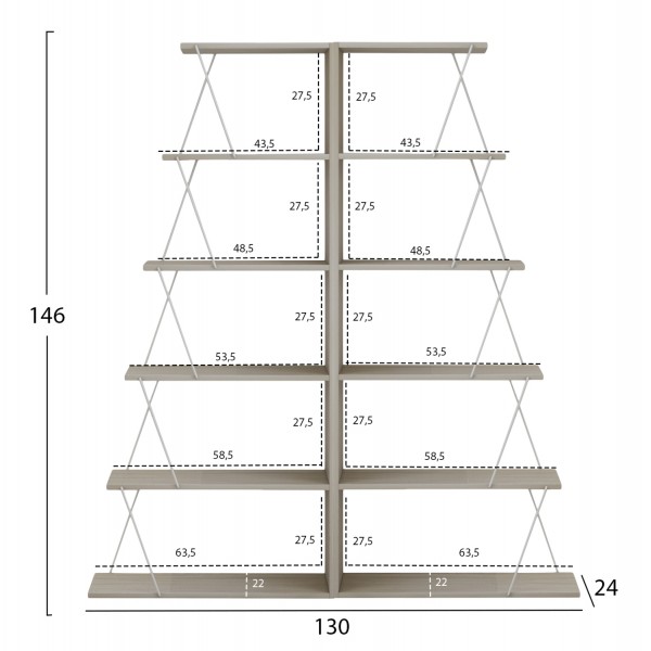 Διαστάσεις ραφιού Ε: 63,5x22x27,5Υ εκ.