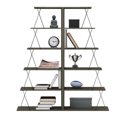 To σετ 2 βιβλιοθηκών ΜΙΝΙ TARS είναι μια μοντέρνα πρόταση για το γραφείο σας ή οπουδήποτε αλλού θέλετε να τοποθετήσετε μια βιβλιοθήκη. Μπορείτε να τις τοποθετήσετε είτε ξεχωριστά σε 2 διαφορετικούς τοίχους, είτε να τις ενώσετε πλάτη-πλάτη, ή όπως αλλιώς ταιριάζει στον χώρο σας. Η κάθε βιβλιοθήκη διαθέτει 4 ράφια τοποθέτησης σε σχήμα σκάλας, τα οποία στηρίζονται μεταξύ τους με μεταλλικές ράβδους σύν ένα ράφι που είναι η κάτω επιφάνεια της βιβλιοθήκης, ενώ οι διαστάσεις τους τις καθιστούν βολικές για πολλούς χώρους. Το χρώμα τους είναι OLIVE GREY με ΜΑΥΡΕΣ ράβδους.