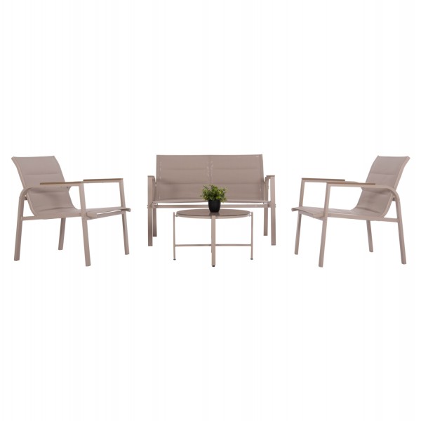 Το σετ σαλόνι εξωτερικού χώρου JULIETTE αποτελείται από έναν 2-θέσιο καναπέ, 2 αναπαυτικές πολυθρόνες, και ένα στρογγυλό τραπεζάκι. Ο καναπές και οι πολυθρόνες διαθέτουν σκελετό αλουμινίου, ενώ το κάθισμα και οι πλάτη τους είναι από ποιοτικό ύφασμα textilene με μια λεπτή γέμιση με αφρώδες υλικό. Το τραπεζάκι πέρα από τον σκελετό αλουμινίου, διαθέτει επιφάνεια από ανθεκτικό γυαλί ασφαλείας (tempered glass). Όλο το σετ είναι σε ΚΑΠΟΥΤΣΙΝΟ χρώμα, ενώ η λεπτομέρεια με το polywood στα μπράτσα προσδίδει στο σετ μια αίσθηση πολυτέλειας. ΔΙΑΣΤΑΣΕΙΣ: ΚΑΝΑΠΕΣ: 110x73,5x76Υ εκ. Διαστάσεις καθίσματος: 101x50 εκ. Διαστάσεις πλάτης: 101x40 εκ. Ύψος μπράτσων: 59,5 εκ. Ύψος καθίσματος: 37 εκ. Απόσταση ποδιών: 102x61 εκ. ΠΟΛΥΘΡΟΝΕΣ: 60x73,5x76Υ εκ. Διαστάσεις καθίσματος:51x50 εκ. Διαστάσεις πλάτης: 51x40 εκ. Ύψος μπράτσων: 59,5 εκ. Ύψος καθίσματος: 37 εκ. Απόσταση ποδιών: 52x61 εκ. ΤΡΑΠΕΖΙ: Φ60x36,5Υ εκ. ΥΛΙΚΑ ΚΑΤΑΣΚΕΥΗΣ: -Ο σκελετός είναι από αλουμίνιο βαμμένο με ηλεκτροστατική βαφή. Το αλουμίνιο είναι μέταλλο με εξαιρετικές μηχανικές ιδιότητες και πολύ ανθεκτικό στις διάφορες μορφές διάβρωσης από την φύση του και απαιτεί ελάχιστο κόστος συντήρησης. Info: Η ηλεκτροστατική βαφή είναι μια διαδικασία ξηρής επίστρωσης που χρησιμοποιείται ως μεταλλικό φινίρισμα. Η ηλεκτροστατική βαφή είναι η επίστρωση ξηρής σκόνης μέσω ηλεκτροστατικής διαδικασίας, η οποία στη συνέχεια «κολλάει» στο μέταλλο μέσω της θερμότητας. -Το ύφασμα textilene 2Χ1 είναι ένα ενισχυμένο ύφασμα και αδιάβροχο. Είναι πολυεστερικό που σημαίνει ότι είναι κατασκευασμένο από πολυεστερικά νήματα υφασμένα από άκρη σε άκρη, και είναι επικαλυμμένο με PVC. - Το γυαλί στο τραπέζι είναι ασφαλείας. Το σκληρυμένο γυαλί ή γυαλί ασφαλείας, είναι περίπου τέσσερις φορές ισχυρότερο από το συνηθισμένο γυαλί. Και σε αντίθεση με το συνηθισμένο γυαλί, το οποίο μπορεί να θρυμματιστεί σε οδοντωτά θραύσματα όταν σπάσει, το σκληρυμένο γυαλί σπάει σε μικρά, σχετικά ακίνδυνα κοκκώδη κομμάτια. Ως αποτέλεσμα, το σκληρυμένο γυαλί χρησιμοποιείται σε εκείνα τα περιβάλλοντα όπου η ανθρώπινη ασφάλεια αποτελεί προτεραιότητα, όπως οι οικιακές εφαρμογές κ.λπ. ΣΥΝΤΗΡΗΣΗ: Το ιδανικό για την συντήρηση του σετ είναι να χρησιμοποιήσετε ένα πολύ μαλακό πανί ή σφουγγάρι, άπλετο νερό και ένα ήπιο προϊόν καθαρισμού, όπως το απορρυπαντικό πιάτων. Μην χρησιμοποιείτε χημικά καθαριστικά. **Η ακριβής χρωματική απόδοση του προϊόντος ενδέχεται να διαφέρει ελάχιστα από το πραγματικό λόγω των διαφορετικών ρυθμίσεων της κάθε οθόνης.