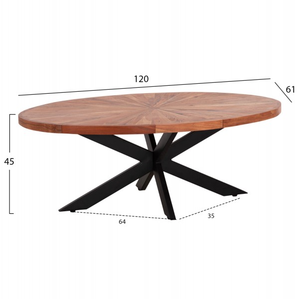 ΤΡΑΠΕΖΙ ΣΑΛΟΝΙΟΥ ΟΒΑΛ MONTANA SUPERIOR HM9906 ΞΥΛΟ ΑΚΑΚΙΑΣ-ΜΕΤΑΛΛΟ 120x61x45Υεκ c542518