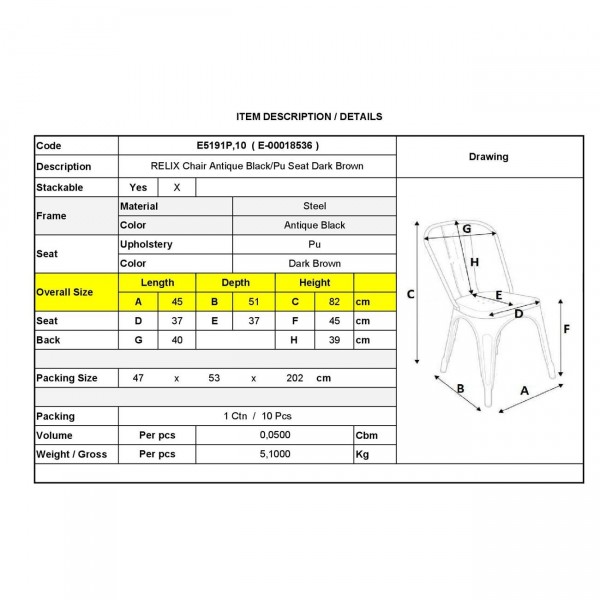 Η δυνατότητα στοίβαξης της Καρέκλας σας προσφέρει ευκολία κατά την μεταφορά και κατά την αποθήκευση.