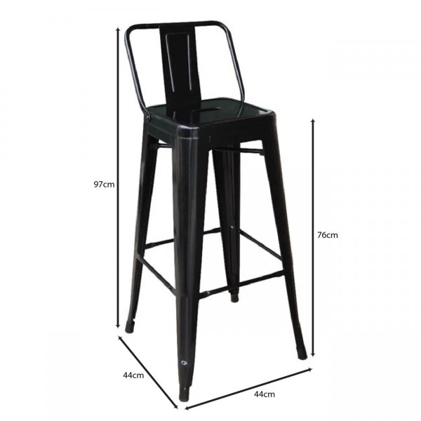 Σκαμπό Bar με Πλάτη, Μέταλλο Βαφή Μαύρο