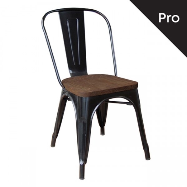 Wood Καρέκλα-Pro, Στοιβαζόμενη, Μέταλλο Βαφή Μαύρο, Κάθισμα Dark Oak