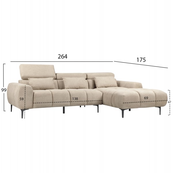 Σας παρουσιάζουμε τον DIVYA. Έναν ολοκαίνουργιο γωνιακό καναπέ (δεξιά γωνία) επενδυμένο με εξαιρετικής ποιότητας ύφασμα σε ΜΠΕΖ χρώμα. Ο καναπές διαθέτει ψηλά μεταλλικά πόδια και κάθισμα με pocket springs σε συνδυασμό με αφρώδη υλικά. Η άνεση που προσφέρει επιτείνεται κι από το γεγονός ότι τα μαξιλάρια κεφαλής στο επάνω μέρος της πλάτης έχουν ρυθμιζόμενη κλίση, ενώ το σετ συμπληρώνουν και 3 μικρά διακοσμητικά μαξιλάρια.