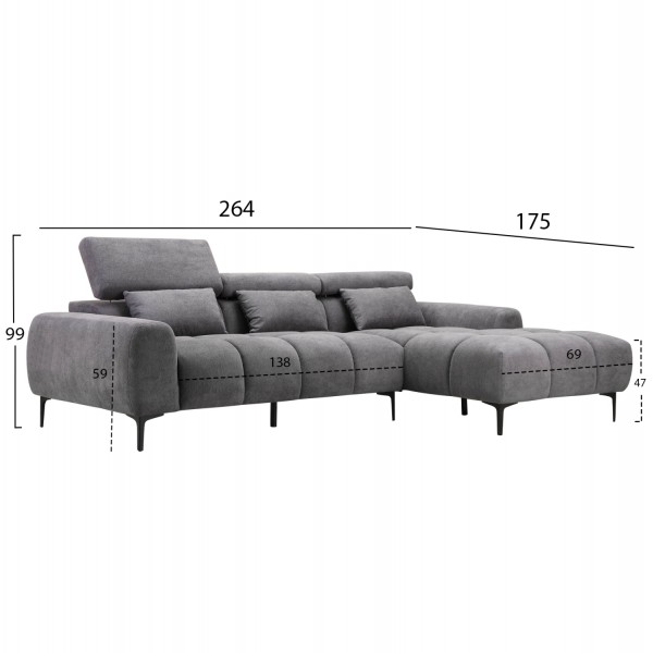 Σας παρουσιάζουμε τον DIVYA. Έναν ολοκαίνουργιο γωνιακό καναπέ (δεξιά γωνία) επενδυμένο με εξαιρετικής ποιότητας ύφασμα σε ΓΚΡΙ χρώμα. Ο καναπές διαθέτει ψηλά μεταλλικά πόδια και κάθισμα με pocket springs σε συνδυασμό με αφρώδη υλικά. Η άνεση που προσφέρει επιτείνεται κι από το γεγονός ότι τα μαξιλάρια κεφαλής στο επάνω μέρος της πλάτης έχουν ρυθμιζόμενη κλίση, ενώ το σετ συμπληρώνουν και 3 μικρά διακοσμητικά μαξιλάρια.