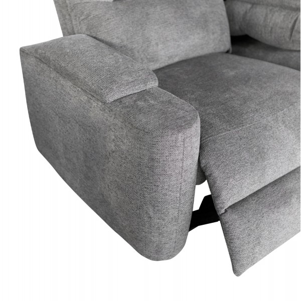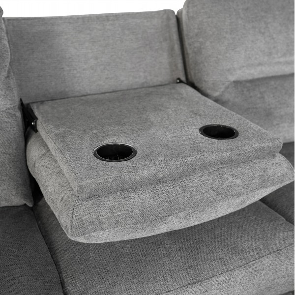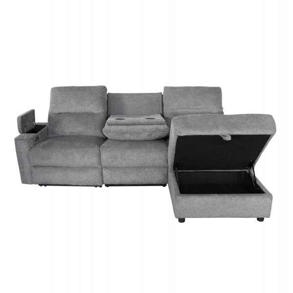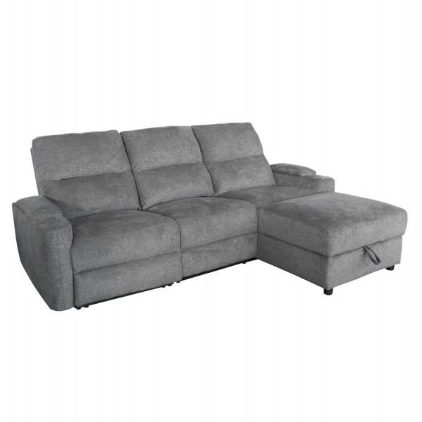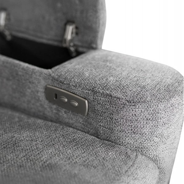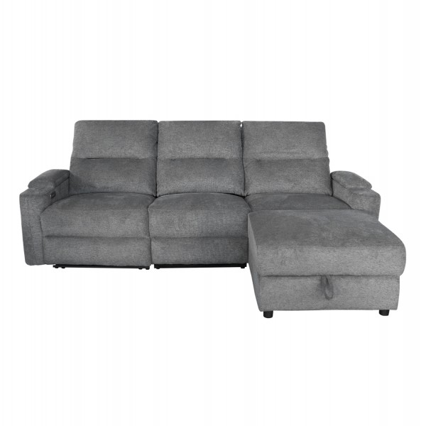 Τριθέσιος Δεξιός Γωνιακός Καναπές SYNTHIA-- ΓΚΡΙ Ύφασμα, με Ηλεκτρικό Ανακλινόμενο Κάθισμα, Αποθηκευτικό Χώρο & Πτυσσόμενο Τραπέζι