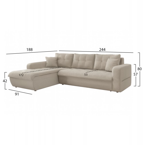 Καναπές-κρεβάτι Αριστερή Γωνία KANSO με ΜΠΕΖ Υφασμάτινη Επένδυση
