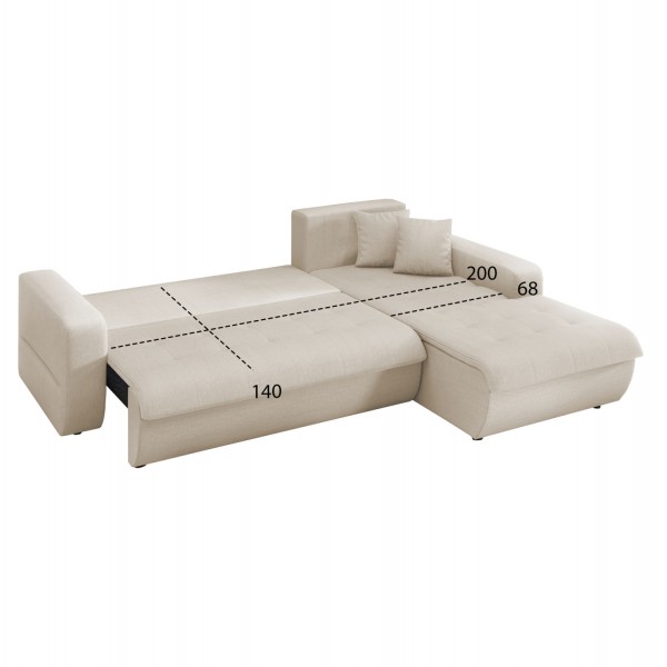 Καναπές κρεβάτι Δεξιά Γωνία KANSO με Μπεζ Υφασμάτινη Επένδυση