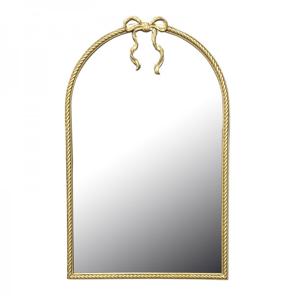 Φέρτε έναν αέρα ρομαντικής κομψότητας και αρχοντιάς στον χώρο σας με αυτόν τον υπέροχο καθρέφτη τοίχου σε σχήμα αψίδας. Το περίτεχνο χρυσό πλαίσιο και ο διακριτικός φιόγκος στην κορυφή, προσδίδουν μια διαχρονική φινέτσα και έναν αριστοκρατικό τόνο.Τεχνικά χαρακτηριστικά: