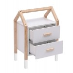 Σας παρουσιάζουμε το καινούργιο παιδικό κομοδίνο PEPE σε ΛΕΥΚΟ χρώμα. Ταιριάζει με ανάλογης αισθητικής κρεβάτια και διαθέτει δύο συρταράκια. Στηρίζεται σε ξύλινο σκελετό σε ΦΥΣΙΚΟ χρώμα ξύλου, σε σχήμα σπιτάκι. Είναι βαμμένο με αβλαβές βερνίκι με βάση το νερό και μη τοξικό, ιδανικό για παιδιά. ΔΙΑΣΤΑΣΕΙΣ: 46x30x67Υεκ. ΥΛΙΚΟ ΚΑΤΑΣΚΕΥΗΣ: Το κομοδίνο είναι κατασκευασμένο από μελαμίνη. Η μελαμίνη είναι είδος ξύλου σε μορφή μοριοσανίδας. Οι μοριοσανίδες είναι προϊόντα που έχουν τη μορφή πλάκας (panel). Άρα, πρόκειται για ένα συνθετικό υλικό με πολύ σκληρή επιφάνεια, με αποτέλεσμα να είναι πολύ ανθεκτική στις γρατζουνιές, στην τριβή και τους λεκέδες. Ο σκελετός είναι από ξύλο πεύκου. Το πεύκο είναι ένα μαλακό, λευκό ή ανοιχτό κίτρινο ξύλο το οποίο είναι ελαφρύ σε βάρος με ευθύγραμμα νερά ξύλου και αντέχει στη συρρίκνωση, την διόγκωση και την κάμψη. ΣΥΝΤΗΡΗΣΗ: Για το απλό καθάρισμα, χρησιμοποιείστε ένα υγρό πανάκι και περάστε όλες τις επιφάνειες. Μην χρησιμοποιείτε ισχυρά λευκαντικά. *Το προϊόν παραδίδεται αμοντάριστο σε εργοστασιακές συσκευασίες **Η ακριβής χρωματική απόδοση του προϊόντος ενδέχεται να διαφέρει ελάχιστα από το πραγματικό λόγω των διαφορετικών ρυθμίσεων της κάθε οθόνης.