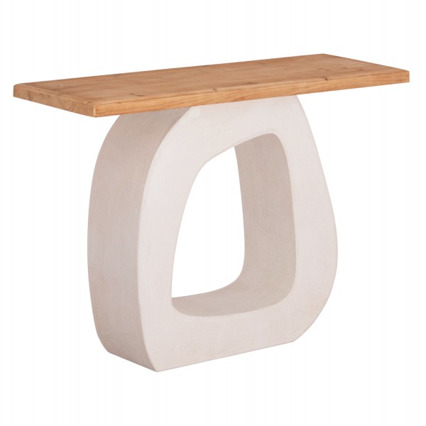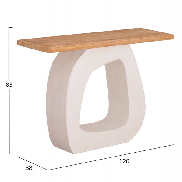 Η χειροποίητη κονσόλα αυτή διαθέτει ορθογώνια επιφάνεια από ξύλο ελάτου σε ΦΥΣΙΚΟ χρώμα, και μια βάση με όμορφο ακανόνιστο design σε ΥΠΟΛΕΥΚΟ χρώμα από MDF με υφή σαγρέ τσιμέντου, που αποτελεί την πιο σύγχρονη τάση στον τομέα του interior design. Τι είναι όμως η κονσόλα; Η κονσόλα είναι ένα κομψό έπιπλο που μπορεί να τοποθετηθεί σε σχεδόν οποιοδήποτε δωμάτιο ή χώρο. Με μια κονσόλα, ο σχεδιασμός του χώρου γίνεται εκλεπτυσμένος, κομψός, και πλήρως σκεπτόμενος. Μπορεί να χρησιμοποιηθεί τόσο ως μέρος ενός σετ με πολλά στοιχεία, όσο και ανεξάρτητα και επιλέγεται για τον γενικό σχεδιασμό του χώρου. Ενδεικνυται για μια "νησιωτικού" στυλ διακόσμηση!