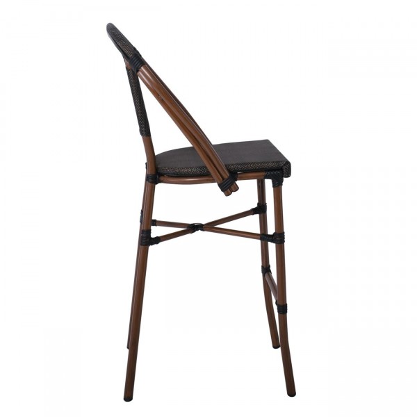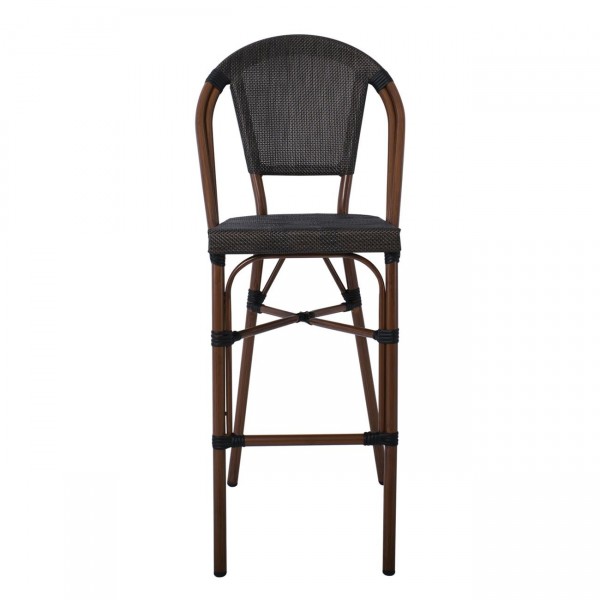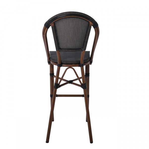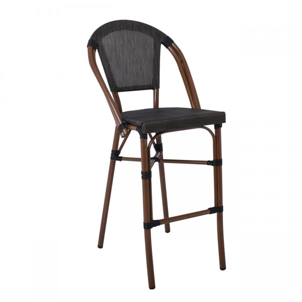 Σκαμπό BAR με Πλάτη, Αλουμίνιο Απόχρωση Καρυδί, Textilene Μαύρο