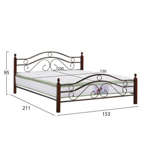 •Το κρεβάτι CELINA σε διάσταση διπλού στρώματος, είναι μια σύνθεση μετάλλου σε ΜΑΥΡΟ χρώμα και ξύλου σε απόχρωση DIRTY OAK. Τα 4 πόδια-κολώνες του κρεβατιού είναι τα ξύλινα κομμάτια της σύνθεσης, ενώ το κεφαλάρι και το ποδαρικό με τα όμορφα σκαλιστά σχέδια, τα πλαϊνά, και οι τάβλες στήριξης του στρώματος είναι όλα μεταλλικά.