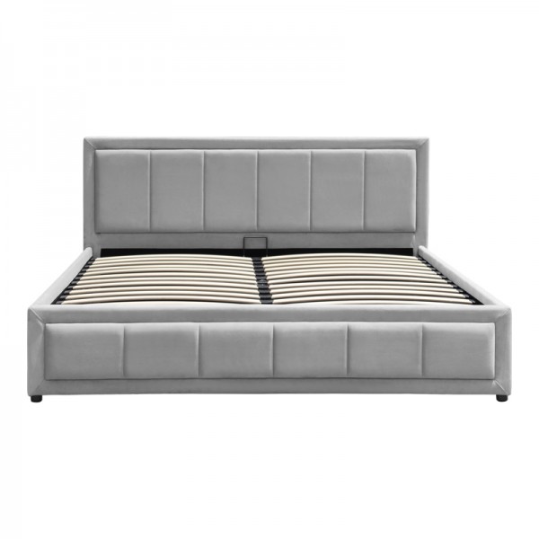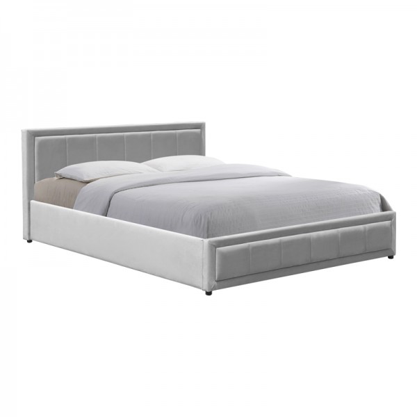 Κρεβάτι Huga με Αποθηκευτικό ΧώροΤο κομψό και πρακτικό κρεβάτι Huga αποτελεί μια εξαιρετική λύση για κάθε υπνοδωμάτιο, προσφέροντας τόσο άνεση όσο και έξυπνο αποθηκευτικό χώρο. Η κατασκευή του, επενδυμένη με υψηλής ποιότητας βελούδο, προσδίδει μια σύγχρονη και εκλεπτυσμένη αισθητική που ενσωματώνεται άψογα σε όλα τα στυλ διακόσμησης.Διαθέτει έναν εύχρηστο μηχανισμό ανύψωσης του στρώματος, ο οποίος αποκαλύπτει έναν ευρύχωρο αποθηκευτικό χώρο από κάτω. Αυτό καθιστά εύκολη την τακτοποίηση κλινοσκεπασμάτων, μαξιλαριών, ρούχων εκτός εποχής ή άλλων αντικειμένων, συμβάλλοντας στην οργάνωση και την τάξη του χώρου.Το κεφαλάρι, με το διακριτικό αλλά μοντέρνο σχέδιο, προσθέτει μια νότα πολυτέλειας και άνεσης, ενώ η ουδέτερη απόχρωση του εξασφαλίζει την ευελιξία του κρεβατιού να συνδυαστεί με ποικίλα χρωματικά διακοσμητικά στοιχεία.Τεχνικά χαρακτηριστικά: