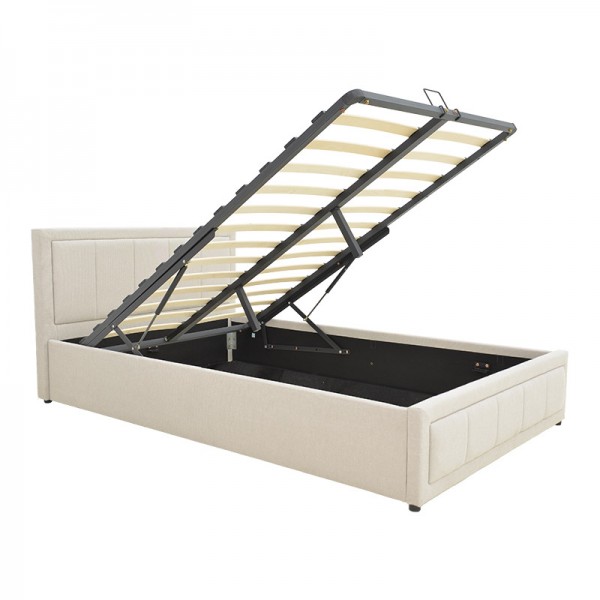 Κρεβάτι Huga με Αποθηκευτικό ΧώροΤο κομψό και πρακτικό κρεβάτι Huga αποτελεί μια εξαιρετική λύση για κάθε υπνοδωμάτιο, προσφέροντας τόσο άνεση όσο και έξυπνο αποθηκευτικό χώρο. Η κατασκευή του, επενδυμένη με υψηλής ποιότητας ύφασμα, προσδίδει μια σύγχρονη και εκλεπτυσμένη αισθητική που ενσωματώνεται άψογα σε όλα τα στυλ διακόσμησης.Διαθέτει έναν εύχρηστο μηχανισμό ανύψωσης του στρώματος, ο οποίος αποκαλύπτει έναν ευρύχωρο αποθηκευτικό χώρο από κάτω. Αυτό καθιστά εύκολη την τακτοποίηση κλινοσκεπασμάτων, μαξιλαριών, ρούχων εκτός εποχής ή άλλων αντικειμένων, συμβάλλοντας στην οργάνωση και την τάξη του χώρου.Το κεφαλάρι, με το διακριτικό αλλά μοντέρνο σχέδιο, προσθέτει μια νότα πολυτέλειας και άνεσης, ενώ η ουδέτερη απόχρωση του εξασφαλίζει την ευελιξία του κρεβατιού να συνδυαστεί με ποικίλα χρωματικά διακοσμητικά στοιχεία.Τεχνικά χαρακτηριστικά: