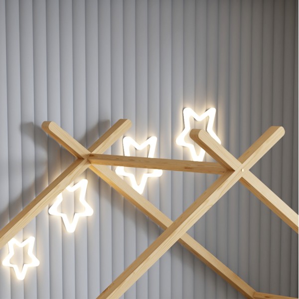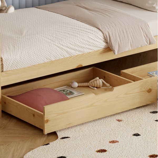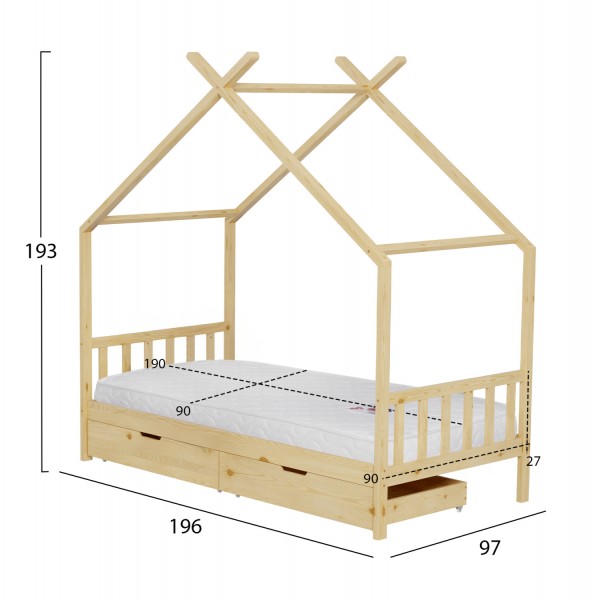 Το παιδικό κρεβάτι KLARICE τύπου Montessori σε διάσταση για στρώμα 90x190εκ, είναι κατασκευασμένο από ξύλο πεύκου σε ΦΥΣΙΚΟ χρώμα. Όλο το κρεβάτι έχει σχήμα σπιτιού και διαθέτει 2 συρτάρια στο κάτω μέρος ως αποθηκευτικό χώρο αλλά και προστατευτικό κάγκελα σε 2 πλευρές, ενώ το στρώμα τοποθετείται σε τάβλες από κόντρα-πλακέ ξυλεία.
