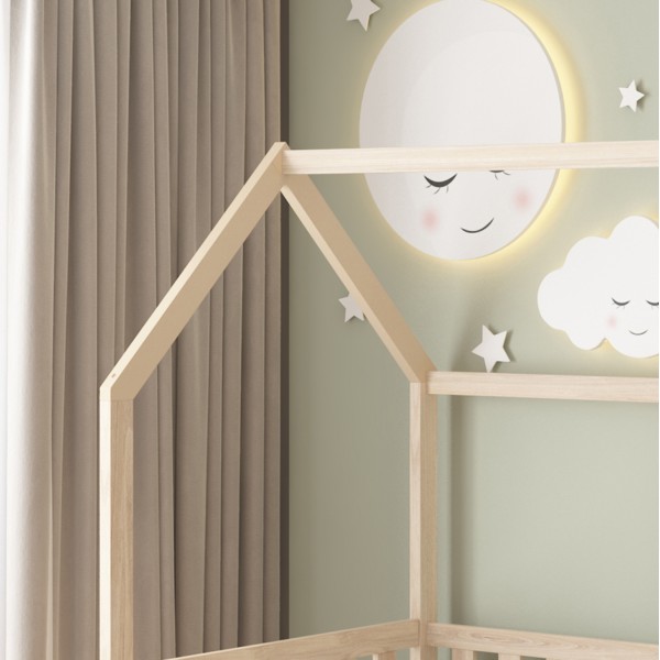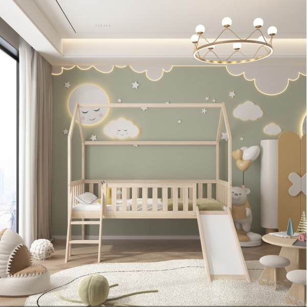 Το παιδικό κρεβάτι PHYLLIS τύπου Montessori σε διάσταση για στρώμα 90x190εκ, είναι κατασκευασμένο από ξύλο πεύκου σε ΦΥΣΙΚΟ χρώμα. Ολόκληρο το κρεβάτι είναι υπερυψωμένο και έχει σχήμα σπιτιού αλλά αυτό που κάνει τα παιδιά να το λατρέψουν είναι ότι διαθέτει τσουλήθρα προσφέροντας ατελείωτες ώρες παιχνιδιού και χαράς. Η πρόσβαση στο κρεβάτι γίνεται με μια μικρή σκαλίτσα, εξυπηρετώντας και τον σκοπό της τσουλήθρας, ενώ το στρώμα τοποθετείται σε τάβλες από κόντρα-πλακέ ξυλεία.