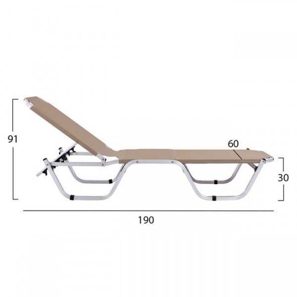 Επαγγελματική ξαπλώστρα παραλίας από αλουμίνιο και textilene σε μόκα απόχρωση. Προδιαγραφές: Τέσσερις (4) μπάρες στήριξης με γραμμώσεις (νεύρα) που αυξάνουν την ακαμψία του σωλήνα (τρεις τετράγωνες και μια στρόγγυλη περιμετρικά κολλημένες) για μεγαλύτερη σταθερότητα. Ανοξείδωτες βίδες. Ειδικά μαλακά πλαστικά στο κάτω μέρος για μεγαλύτερη αντοχή στην αποθήκευση.