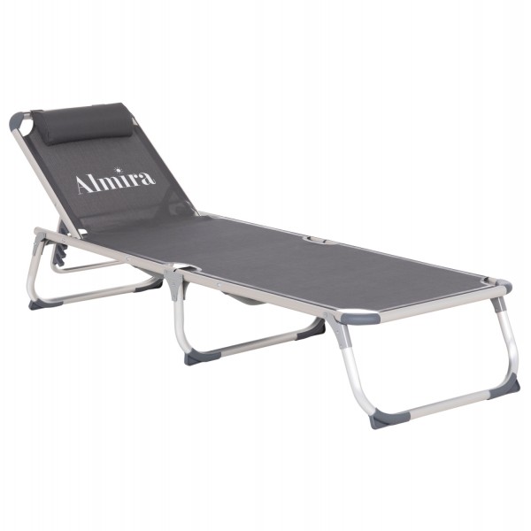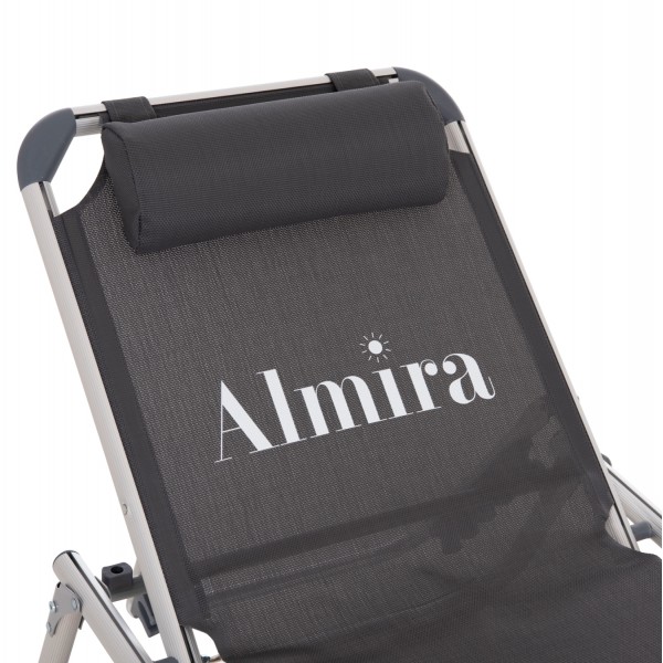 Η πτυσσόμενη ξαπλώστρα παραλίας βαρέως τύπου ALMIRA είναι η κλασσική και διαχρονική αξία για την παραλία. Έχει αποδείξει την χρησιμότητα αλλά και την λειτουργικότητά της εδώ και πάρα πολλά χρόνια. Είναι κατασκευασμένη από αλουμίνιο και textilene σε ΓΚΡΙ χρώμα. Η σκαλιέρα έχει 5 επίπεδα (+1 flat).
