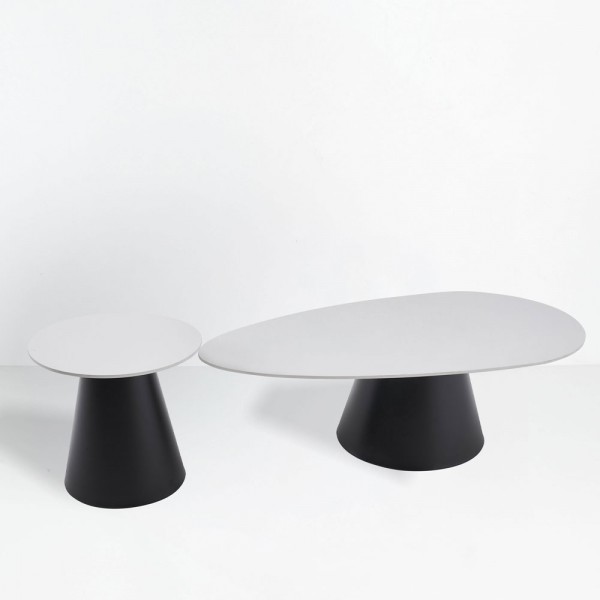 OVO COFFEE TABLE SET 2ΤΕΜ ΛΕΥΚΟ ΜΕ ΟΨΗ ΜΑΡΜΑΡΟΥ ΜΑΥΡΟ 129x69x38cm c543235