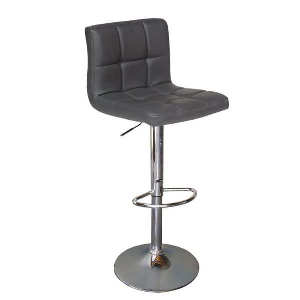Σκαμπό BAR με Πλάτη, Χρώμιο, PU Γκρι, Ρυθμιζόμενο Ύψος, Περιστρεφόμενο