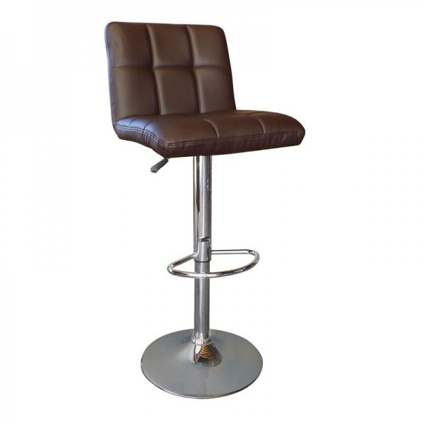 Σκαμπό BAR με Πλάτη, Χρώμιο, PU Σκούρο Καφέ, Ρύθμιση Ύψους, Περιστρεφόμενο