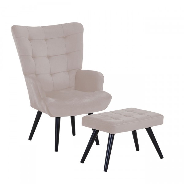 LOBBY Πολυθρόνα - Μπερζέρα με Σκαμπό - Υποπόδιο, Μέταλλο Μαύρο, Ύφασμα Velure Μπεζ