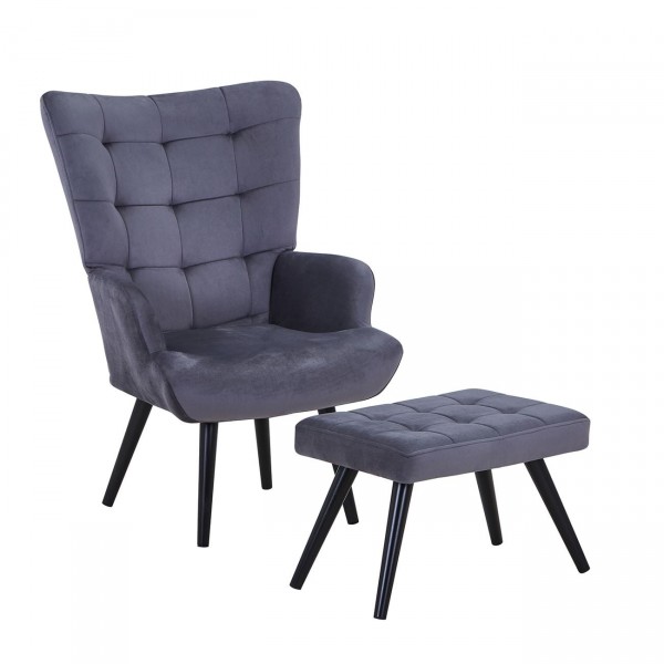 LOBBY Πολυθρόνα - Μπερζέρα με Σκαμπό - Υποπόδιο, Μέταλλο Μαύρο, Ύφασμα Velure Σκ.Γκρι