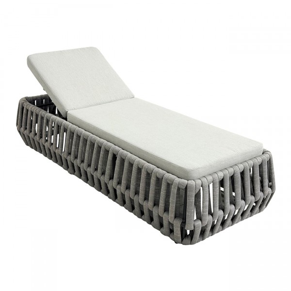 MAJORCA Ξαπλώστρα, Αλουμίνιο με Olefin Rope Γκρι, Μαξιλάρι Ανοιχτό Γκρι