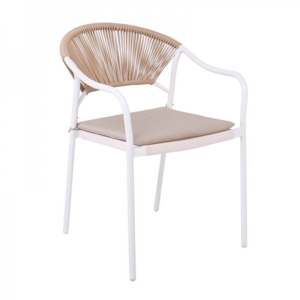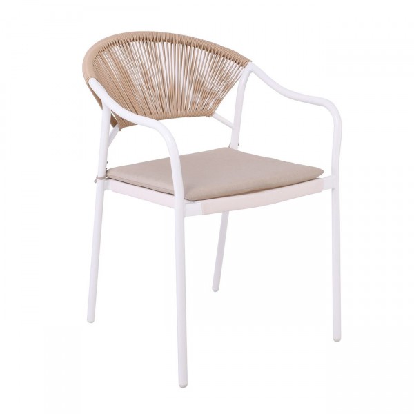 Πλάτη - Κάθισμα : Wicker Φυσικό - Μαξιλάρι Εκρού